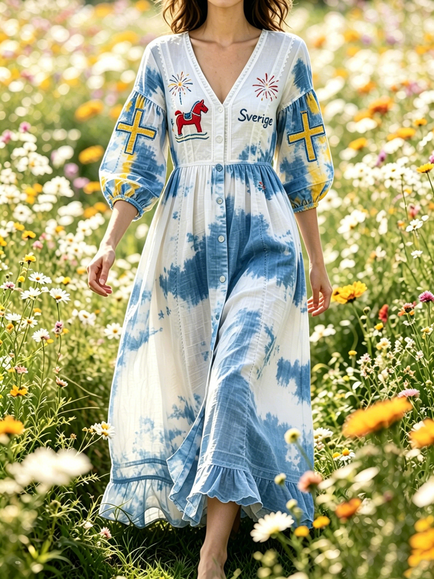 Damer Svensk nationaldag minneskonsttryck klänning